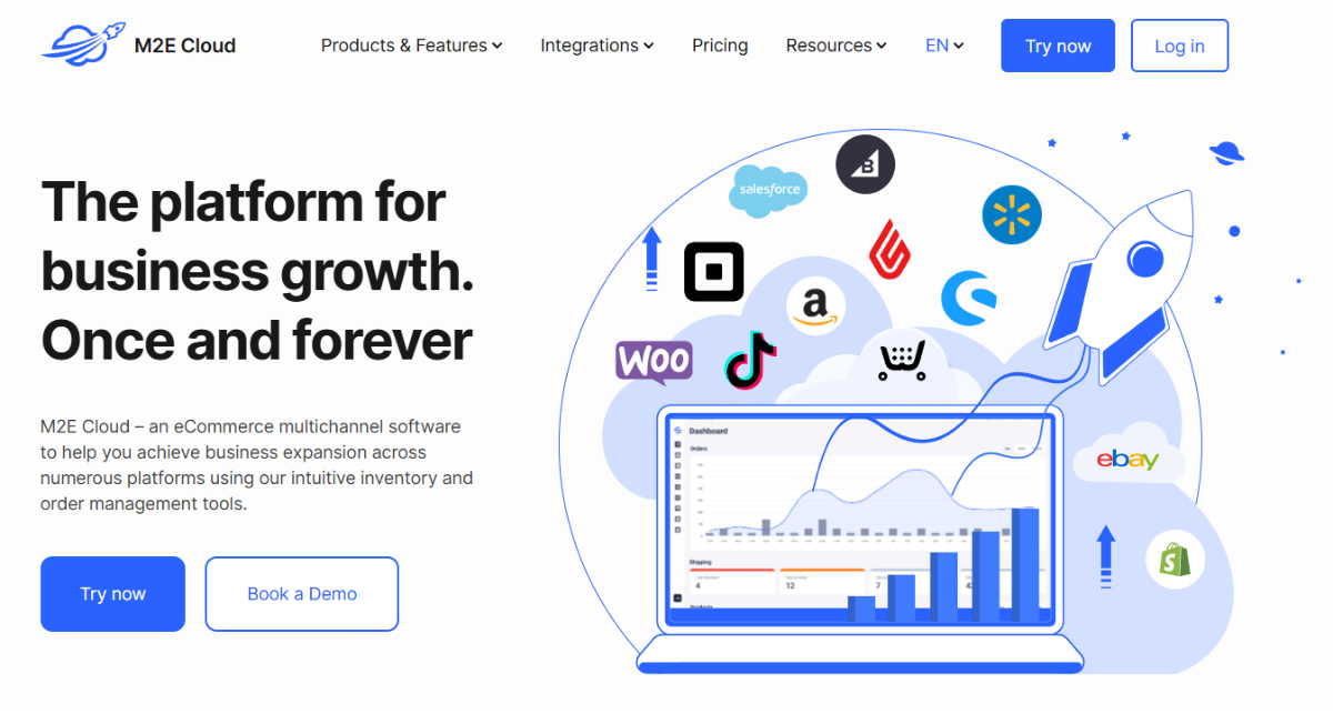 M2E Cloud offers a high-speed, flexible, and scalable solution for multi-channel ecommerce management. It connects inventory from ecommerce platforms (Shopify, BigCommerce, Woo, etc.) or POS systems with major marketplaces like eBay, Amazon, Walmart, and TikTok Shop. Businesses can manage existing inventory, list new products, and process orders directly from their stores.