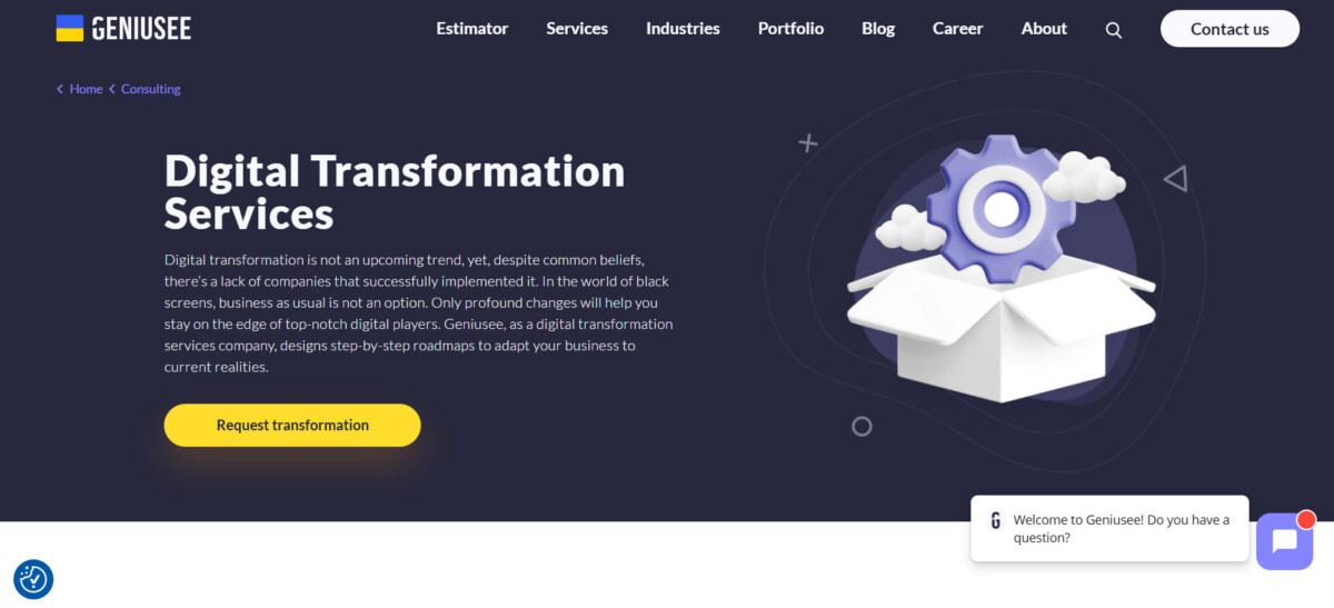 Geniusee digital transformation services help companies modernize operations. This is achieved through well-structured, sequential roadmaps aligned with present-day digital conditions. These services move organizations past obsolete processes and prepare them to compete with leading digital firms.