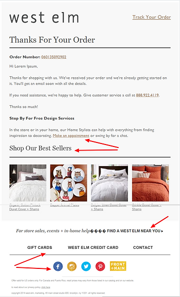 West Elm does a really nice job of including a few different elements calling the customers to take more actions with their store.