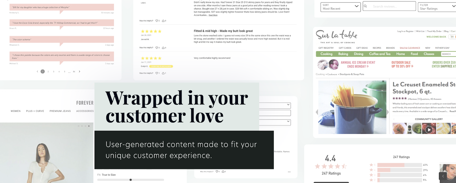 Like Yotpo, they offer the ability to collect product ratings and reviews. And they also let you deploy Q&As, user-generated social media curation, and social selling.