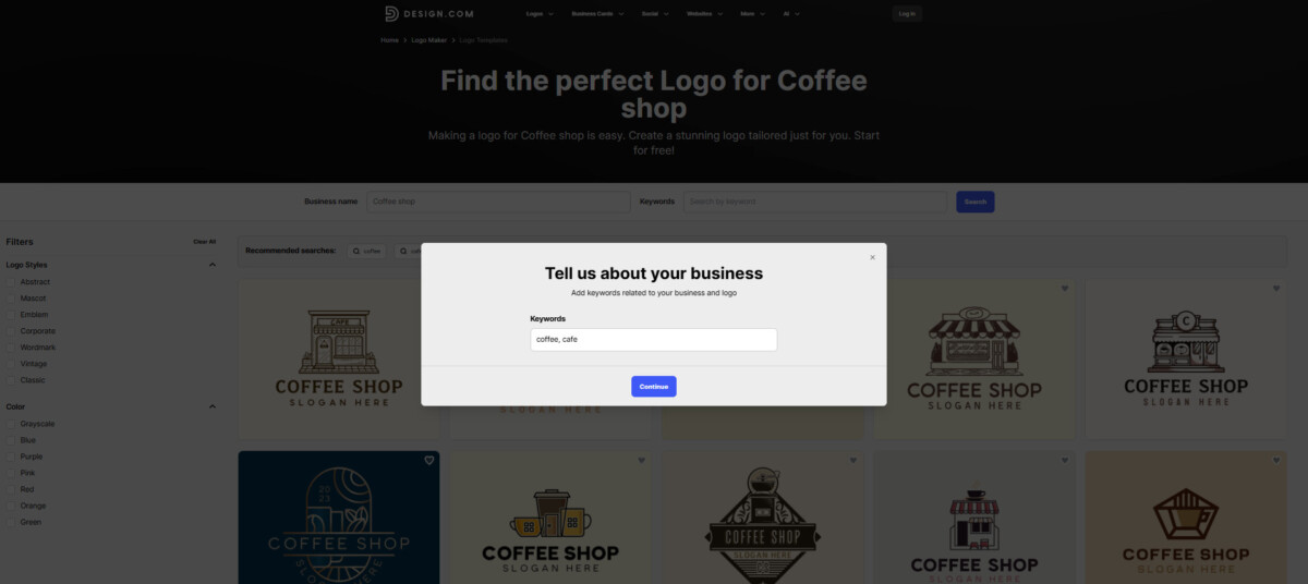 Tailor Brands Logo Maker requests detailed business information and style preferences to provide highly personalized template options, minimizing editing time. After entering your company name and optional tagline, you’ll provide information about your products, industry, and a brief business description.