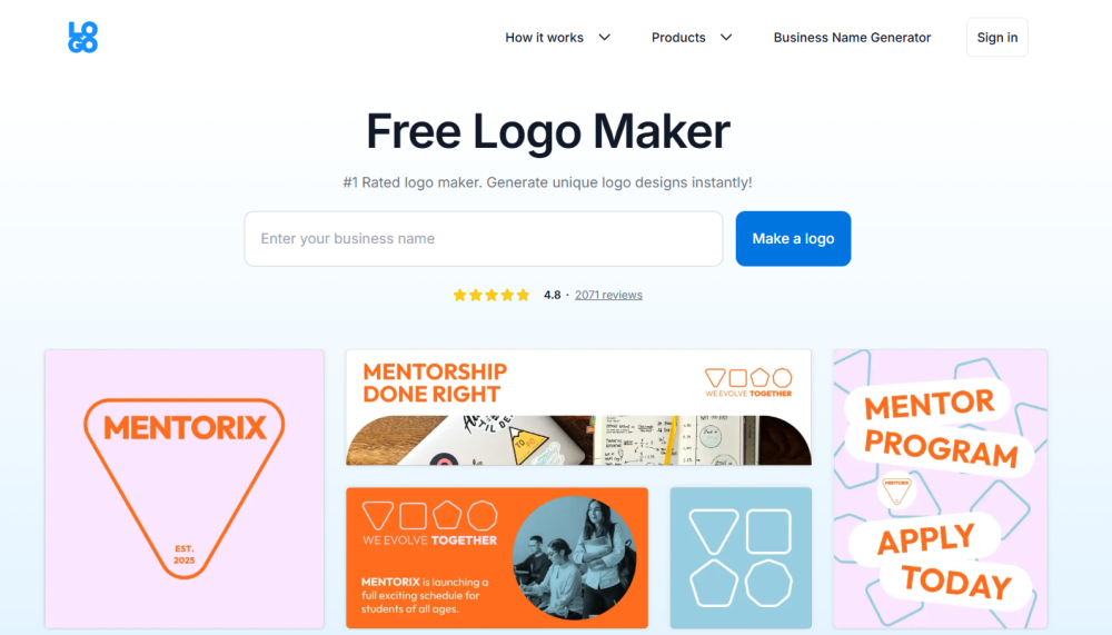 - AI-powered logo generation tailored to your brand and industry