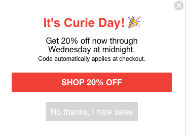 3. Curie Day: Sitewide Promo