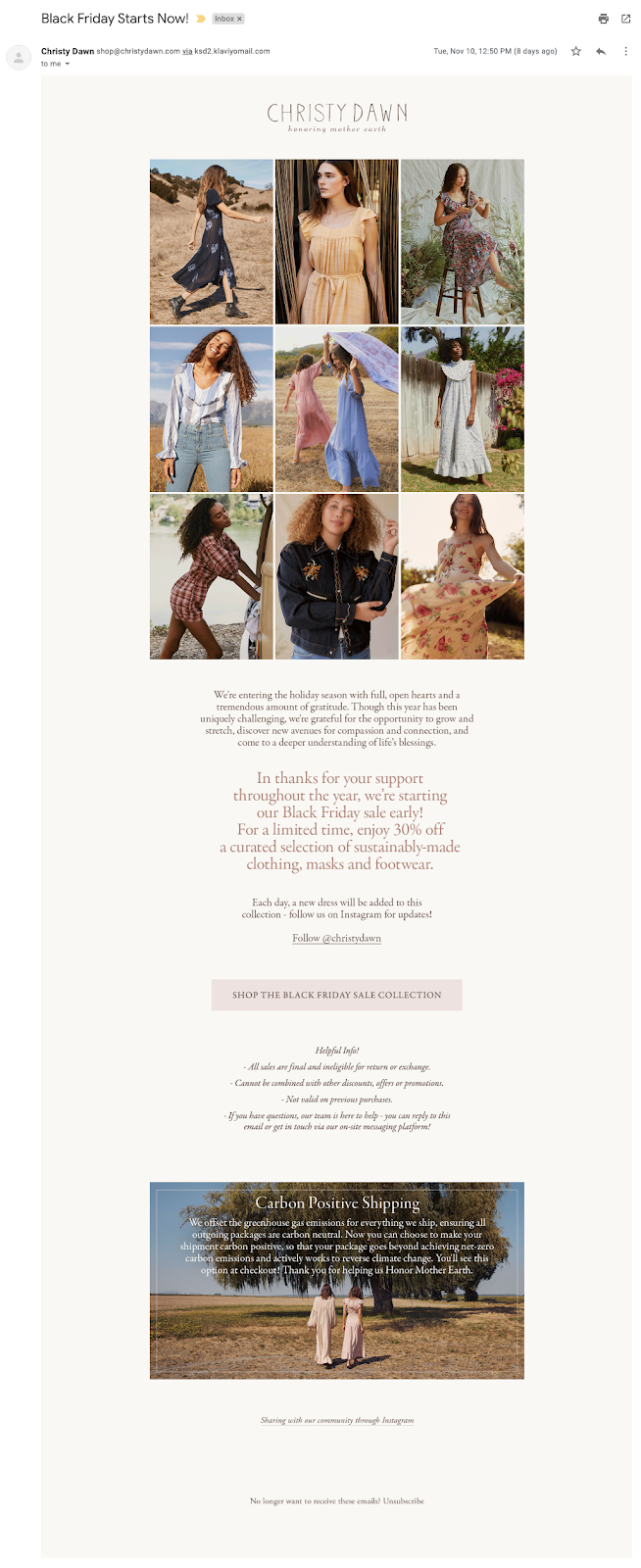 And the email starts off with “In the spirit of slowing down, we’re dropping our annual Black Friday sale early.”