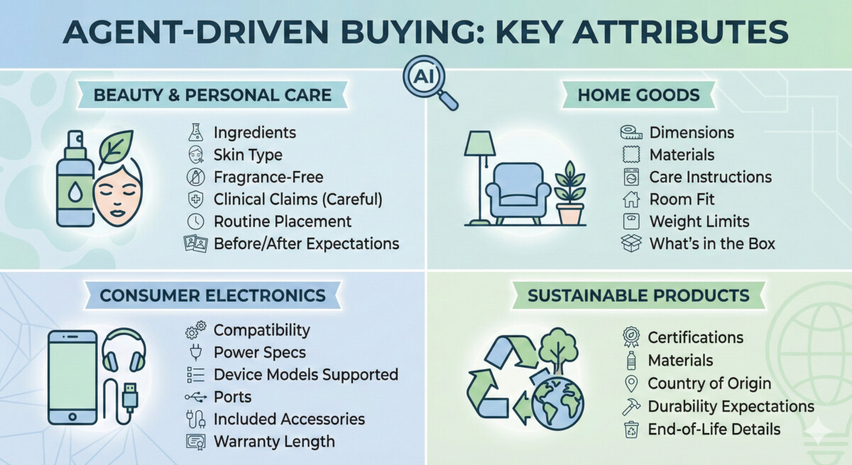 Agent-driven buying rewards products that are easy to match to constraints. Think of an agent like a sharp store associate with no patience for vague answers. If your product is measurable, comparable, and clearly “for” someone, it tends to surface more often.
