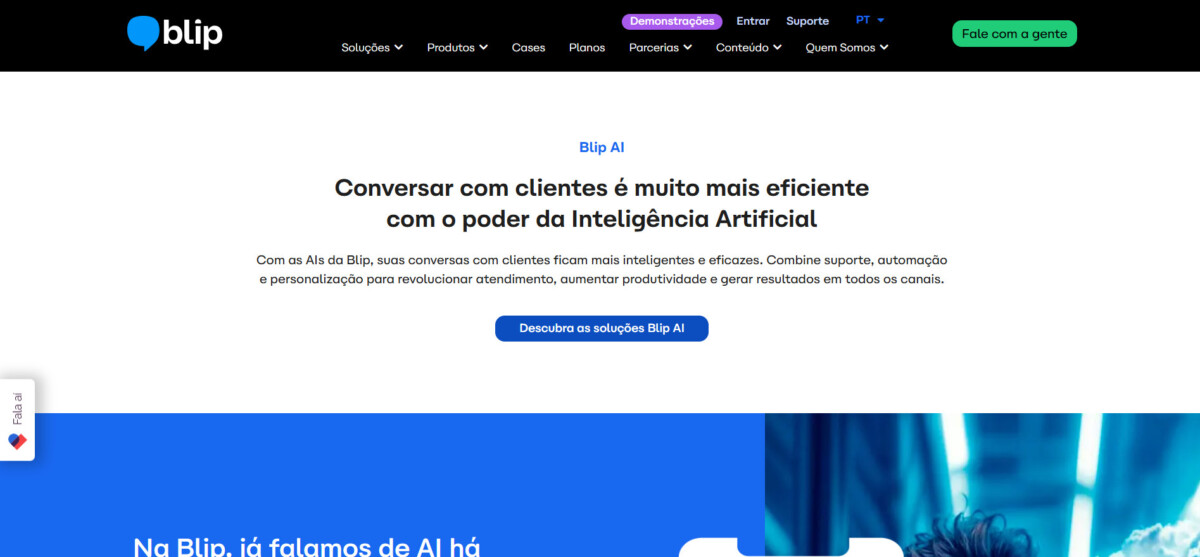 Blip is a Brazilian conversational communication platform that uses artificial intelligence to make chatbots smarter and more dynamic. With it, companies can create intelligent conversation flows and offer support on channels like WhatsApp, Messenger, Telegram, and others, ensuring availability and scalability in customer service.