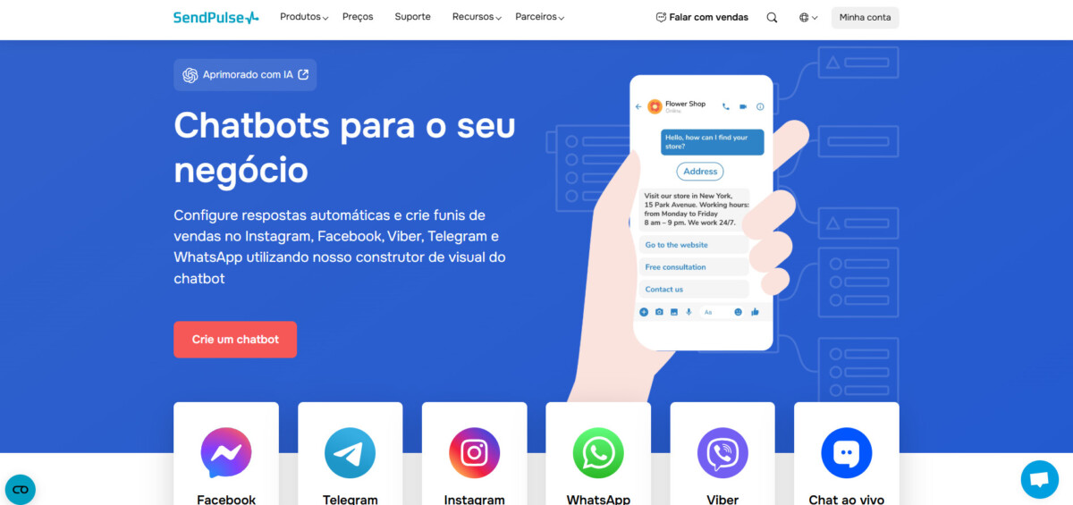 SendPulse is a complete automation platform that integrates AI chatbots, email marketing, CRM, website builder, and much more into a single solution. Its intelligent chatbots can be used on Instagram, WhatsApp, Facebook, and Telegram, and can also be integrated with forms and websites created within the platform itself.