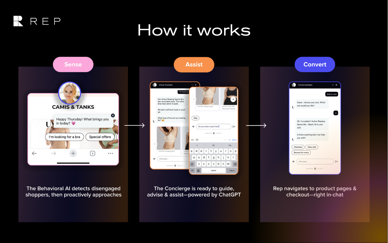 “Rep helped a lot in product discovery. For people to have an interactive layer for product discovery has been huge. We get amazing conversion rates. Our average conversion rate across devices is around seven and a half percent. So to have people converting in the 20% range from AI is great.”