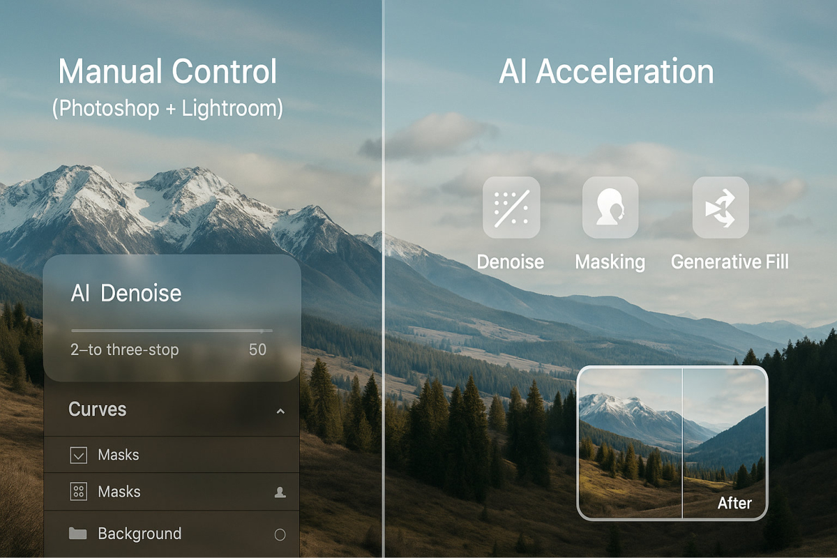 - Automate the baseline. Run Auto Enhance or Denoise first. F-stoppers measured an average seventy percent reduction in editing time per image when photographers began with AI corrections.
