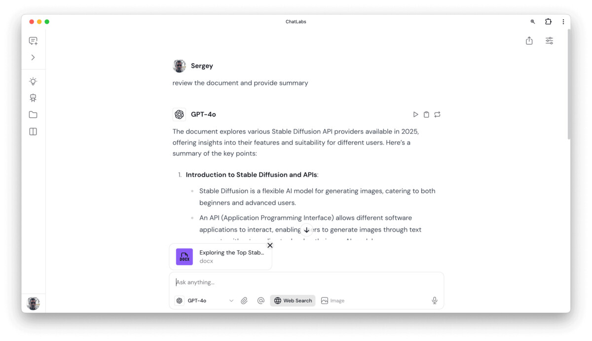- Over 200 best AI models ready for work with files and documents. You can use GPT-4o, Claude 3.7 Sonnet, Mistral, Llama, Gemini and much more, switching between them with literally a single button and not needing any subscription to those models or their API. But this is not just a chatbot. Let’s go over some other features.