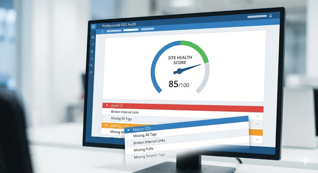 The Health Score is a 0 to 100 snapshot that helps prioritize technical SEO fixes. The real value is not the number itself, but the list of issues behind it, ranked by severity. Use it to plan your next actions and to explain progress to clients in plain language.