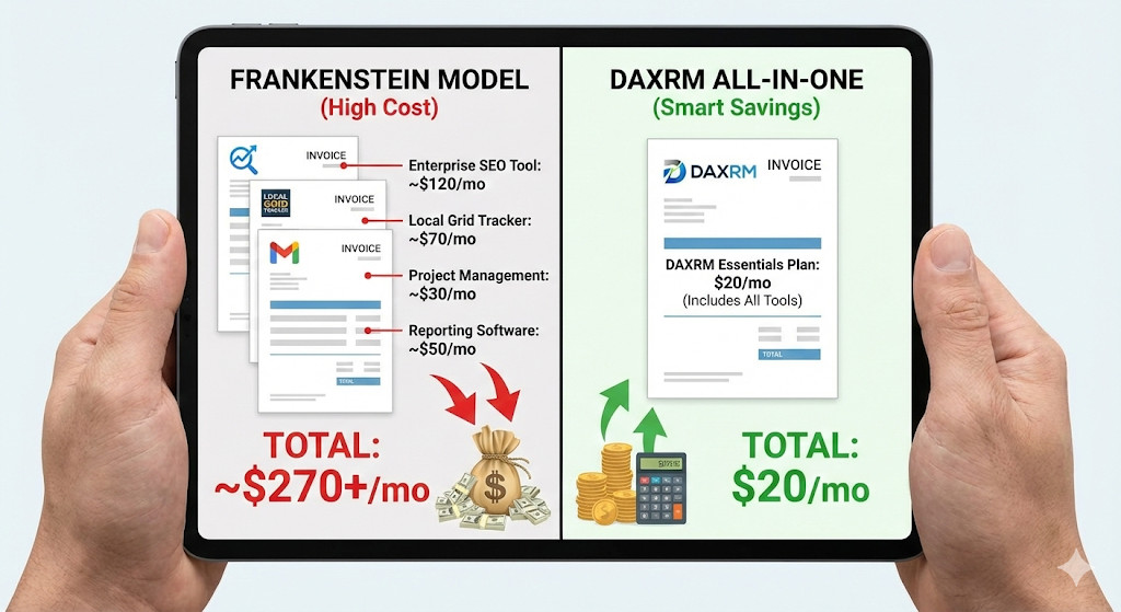 List every tool you use for audit, rank tracking, local visibility, tasks, and reporting, then map each one to a single client deliverable. If two tools exist just to move data into a report, that is a strong sign to consolidate. Start by testing DAXRM with a small set of clients to see if it replaces your biggest time sinks.