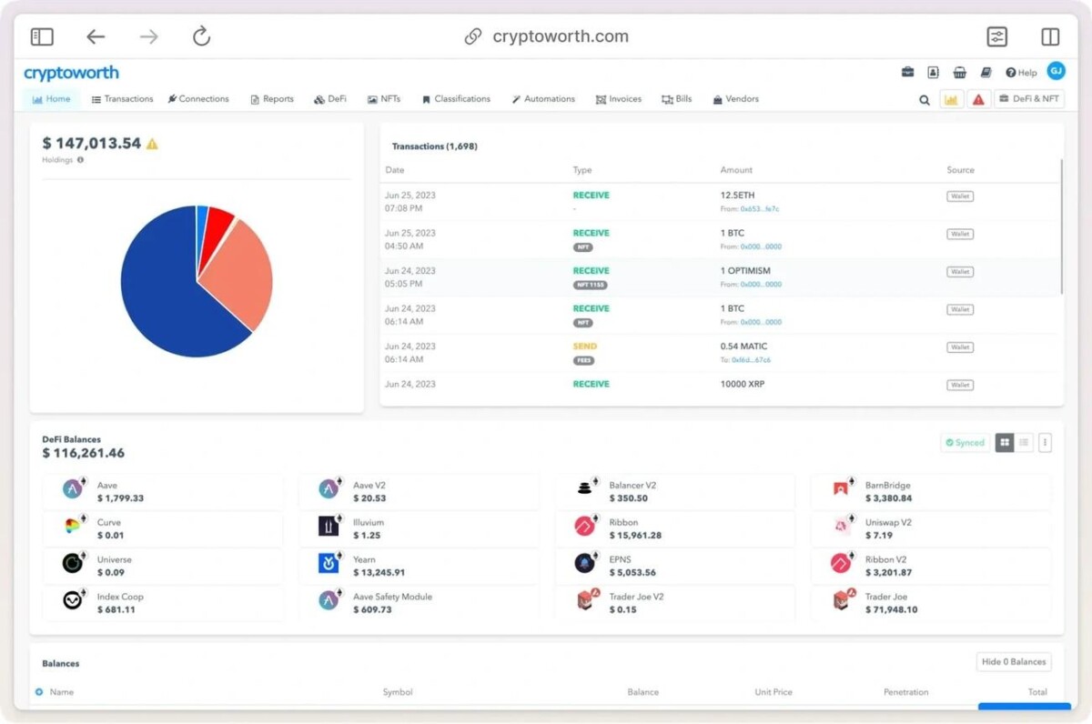 Cryptoworth’s value comes from knowing how to connect with over 190 blockchain networks and more than 1000 data sources. This wide network means you can track and manage all your digital asset transactions in one place, whatever blockchain they’re on.