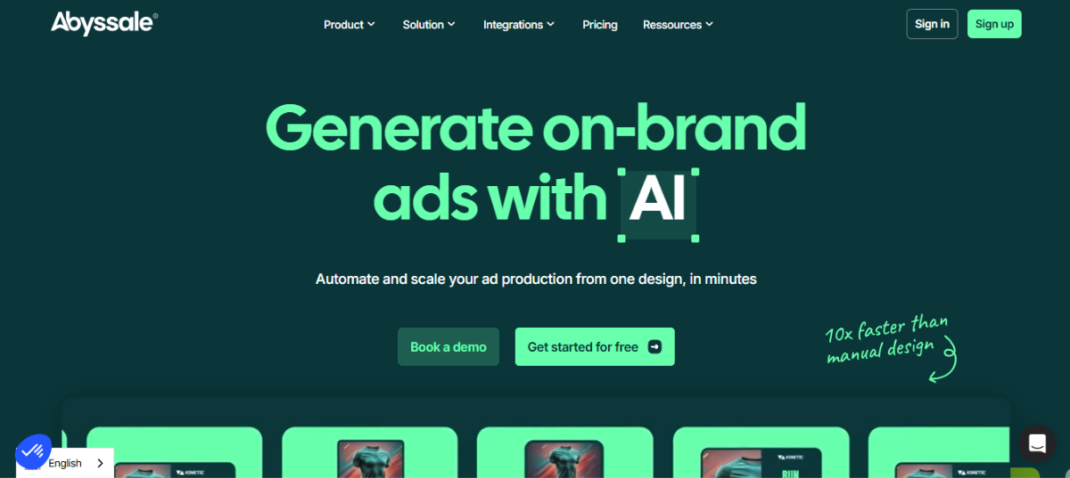 Abyssale uses templates and brand guidelines you provide (logos, colors, fonts) to automatically generate large amounts of on-brand visual content, ensuring consistency across different ads and social media posts without manual design work for each.