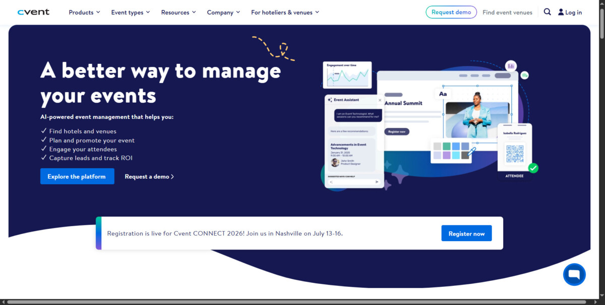 Cvent is built for enterprise-scale events and conferences. It’s best for organizations that manage large attendee databases and need advanced analytics, reliability, and integrations.