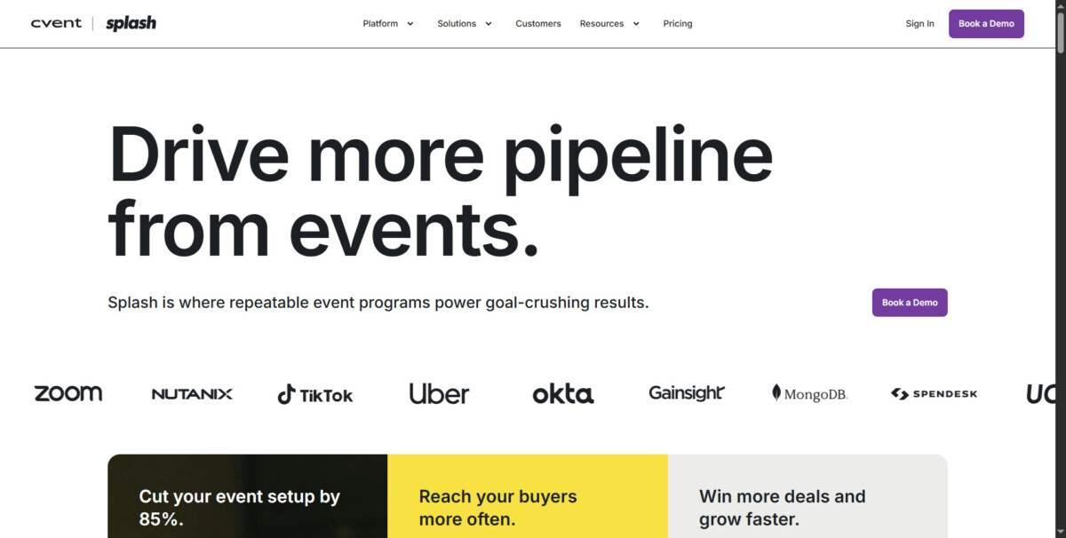 Splash is designed for marketing and event teams that want to create branded experiences through events. It’s perfect for companies that run frequent events and want to maintain strong brand control.