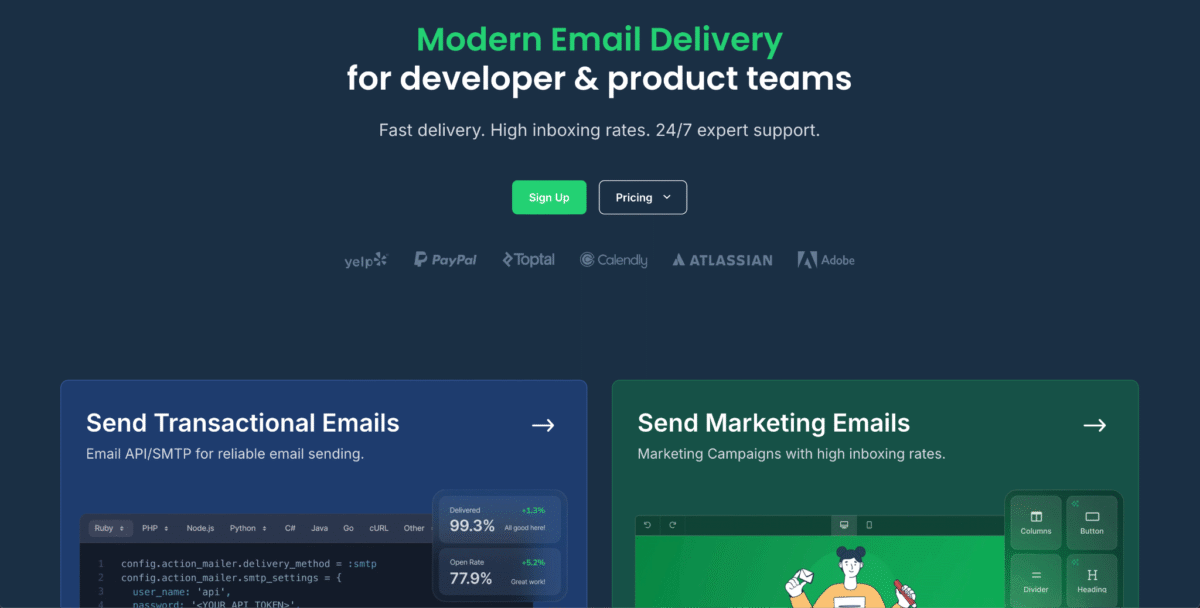 - Key features: A dedicated focus on transactional email, transparent delivery stats, and solid customer support.