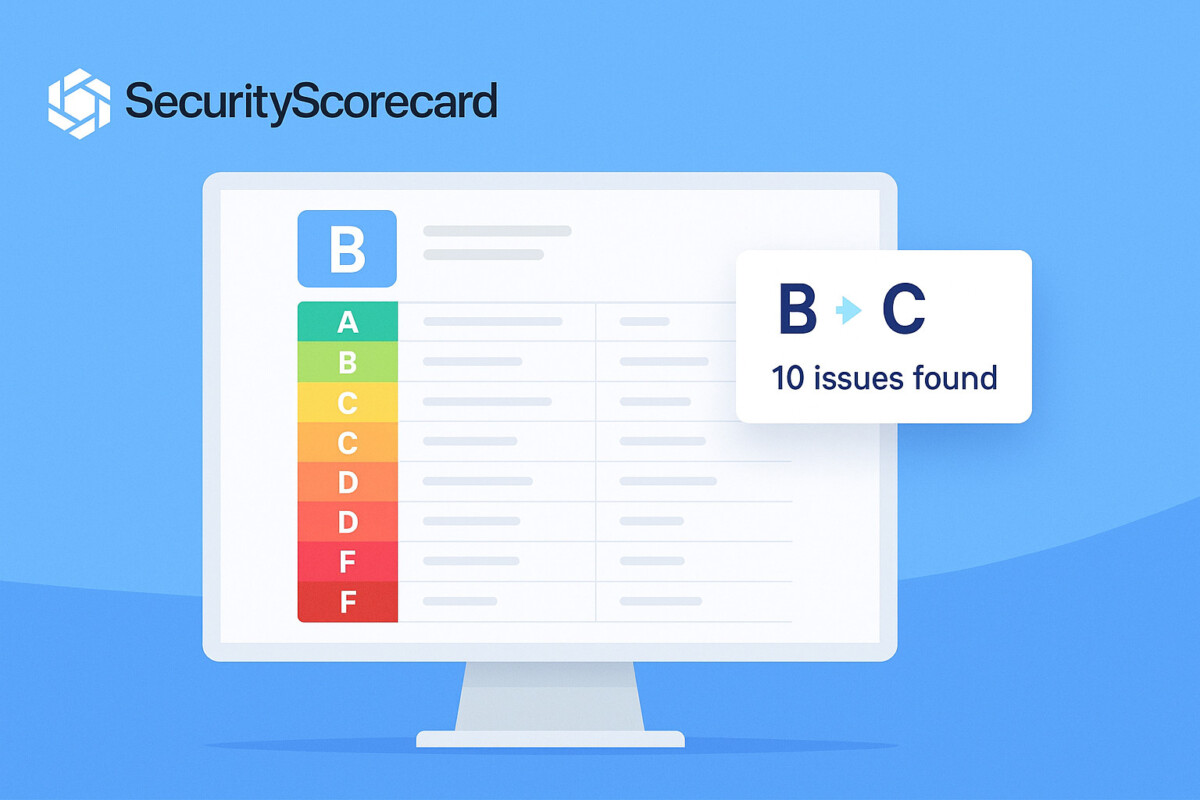 SecurityScorecard turns every supplier into a familiar A–F report card. The platform scans a vendor’s entire internet footprint (web apps, IP ranges, email settings, patch cadence) and assigns daily grades across ten risk categories. A drop from B to C lands in your inbox with the exact issues attached, so you spend minutes, not hours, spotting what changed.