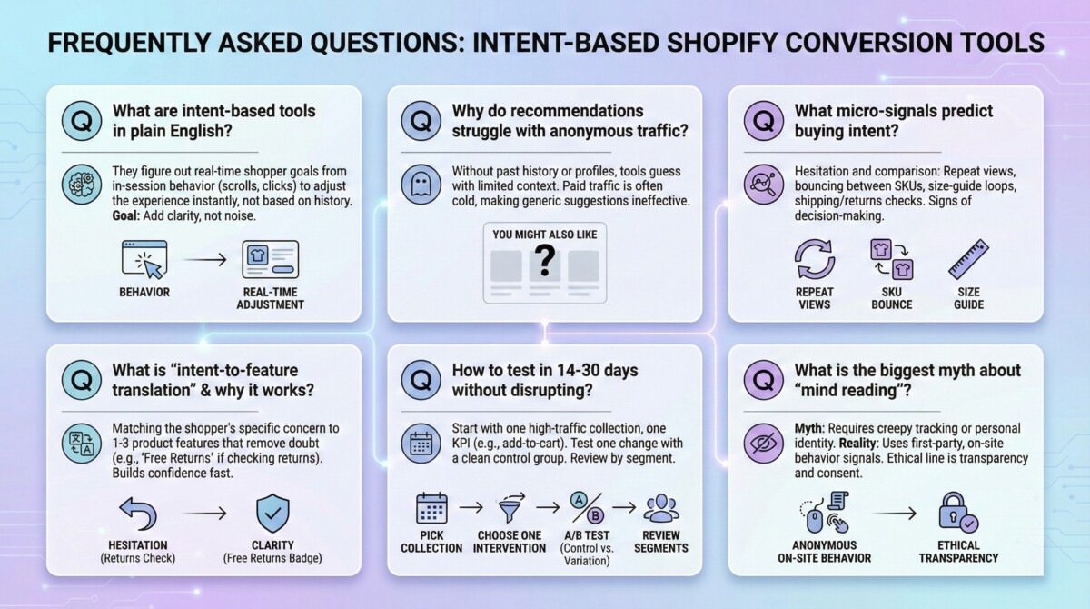 Browsing history is useful, but it’s not enough when most traffic is anonymous, and sessions are short. The shift to intent-based Shopify conversion tools is really a shift from “add more products to the page” to “add more clarity at the decision moment.”