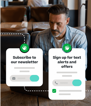 Target returning shoppers on your website with intelligent product recommendations based on what they previously browsed, bought, or even left in their cart during past visits. Further, if they only opted into emails before, target them with an SMS lead capture now that you’ve had a chance to demonstrate more value to them.