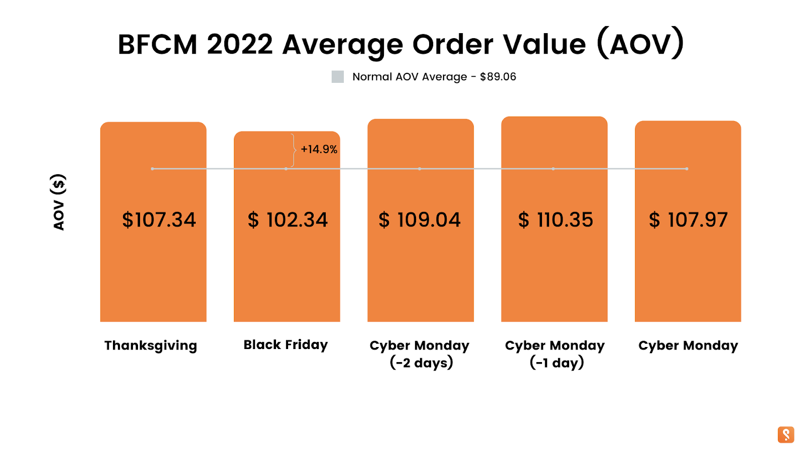 - Average Order Value (AOV) during 2022’s BFCM: $105.51