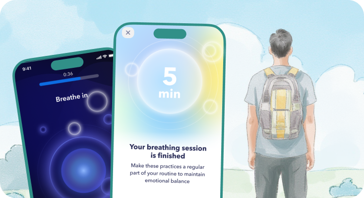 Breeze Self-Discovery can address work-related anxiety with 5 minutes of relaxation games or breathing exercises. These short, evidence-based tools can be used during the workday without disrupting workflow. In fact, big corporations, such as Microsoft or McKinsey, have 5-minute relaxation sessions scheduled across teams.