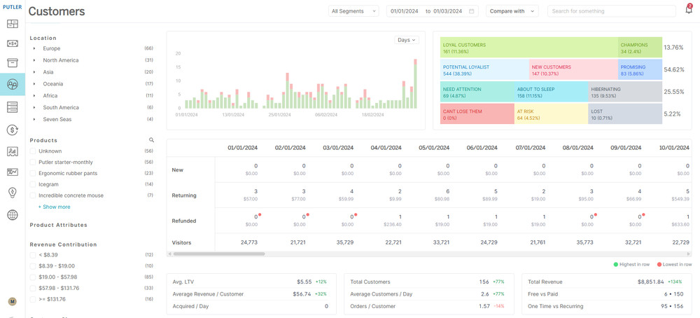 Putler is an all-in-one eCommerce analytics tool designed to help you maximize CLV. With 200+ powerful metrics, it takes the guesswork out of customer insights.