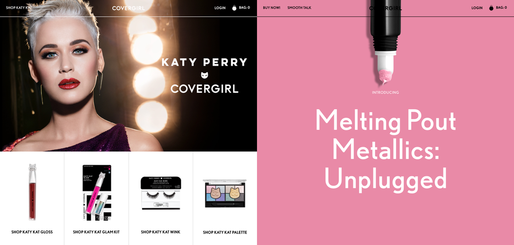 They’ve also created standalone sites for product drops—like Melting Pout Metallics—and limited-runs, like their collaboration with pop star Katy Perry.