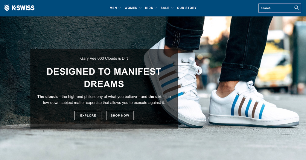Instead of selling through retail partners, K-Swiss partnered with popular entrepreneur Gary Vaynerchuk to create the world’s first signature sneakers for entrepreneurs and sell them directly. To enable fast-paced growth, K-Swiss and its two sister brands, Supra and Palladium, replatformed to Shopify Plus earlier this year.