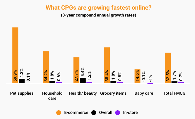 Notice how much faster ecommerce is growing for CPG companies in the following sectors: