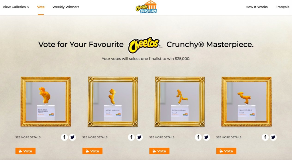The brand built off of its initial success to create a Cheetos Museum, where consumers can enter to win what they see. Customers send photos of unique Cheetos snack shapes, along with a description, for a chance to win something related to whatever it is they think they see.