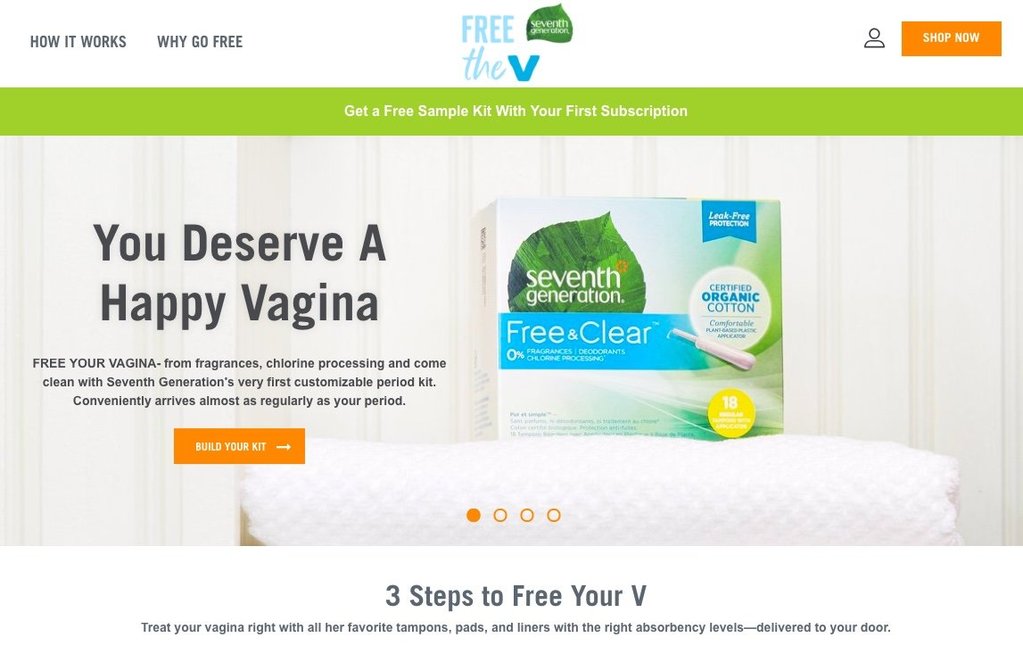 Seventh Generation offers a line of feminine hygiene products from Unilever. What makes this a stand-out is the customization of their monthly (or bi-monthly) box subscription. By encouraging buyers to take a quiz, the company can pre-determine items to be delivered in a customized kit every month.
