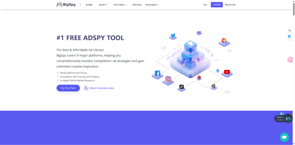 BigSpy is a versatile ad intelligence platform that covers multiple advertising platforms, including TikTok. It provides users with a large database of ads from various industries, making it a useful resource for studying competitors and gaining inspiration for new campaigns.