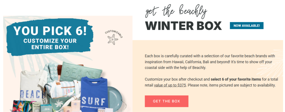 - Create a “Surprise Me” option. To do this, let your customers opt for a mystery item in their box to add excitement and increase engagement.