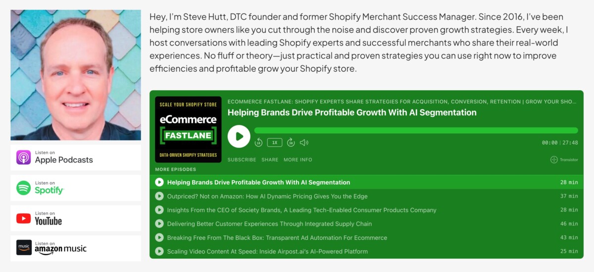 What sets eCommerce Fastlane apart is our mix of expert interviews and data-driven advice. This isn’t just another eCommerce podcast; it’s what I like to call a growth accelerator!