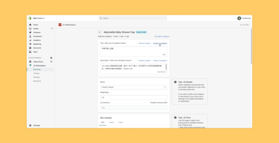 That’s why we’re excited to announce the JD Marketplace sales channel for Shopify merchants in the US. This channel helps merchants sell on JD.com, one of China’s largest online marketplaces and retailers.