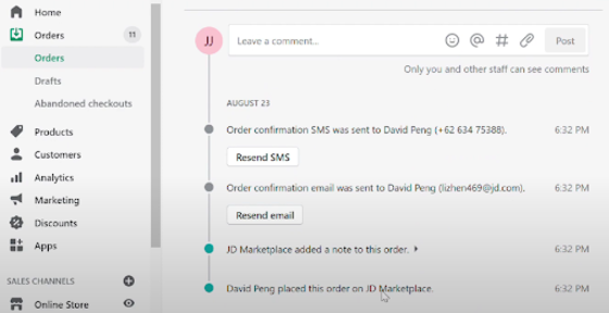 Once you ship packages to the facility, you’ll be able to track them inside your Shopify account. Just navigate to the order’s page and scroll down to the Timeline section to see updates.