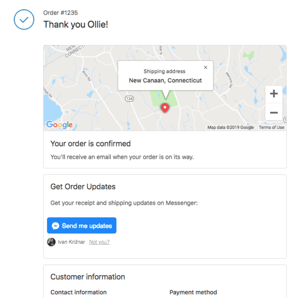 Once the buyer subscribes, they’ll receive order confirmations on Messenger.