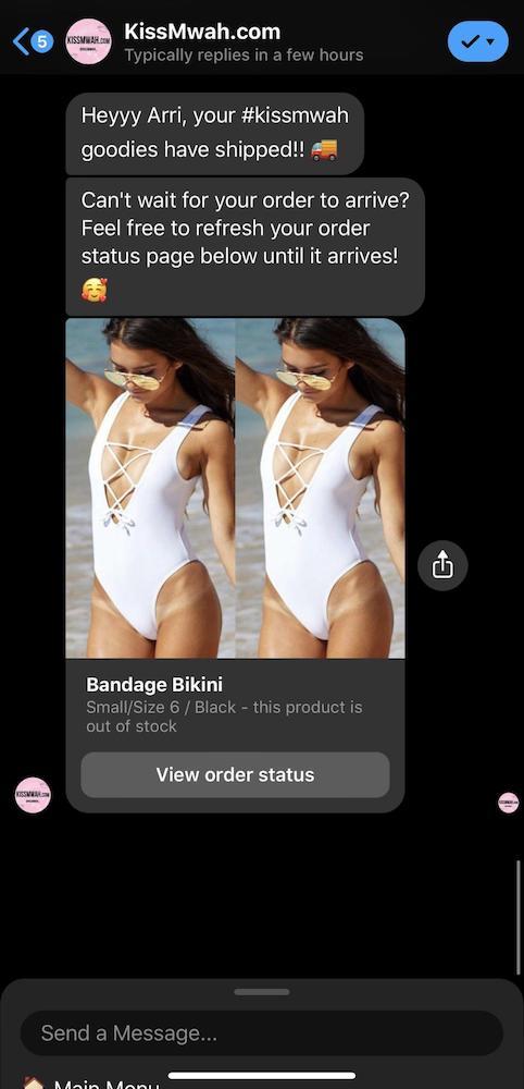 If you’re sending order confirmations, shipping confirmations go hand in hand. In KissMwah’s last message, the order confirmation asks if the customer would like to be notified when their order ships.