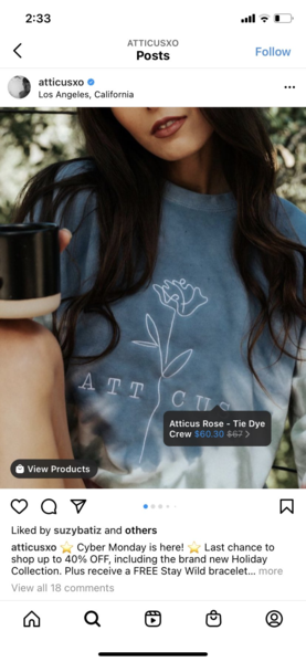 The merch is integrated into the content shared on Atticus’s Instagram account, where the bulk of his followers are, with products tagged to make the content shoppable.