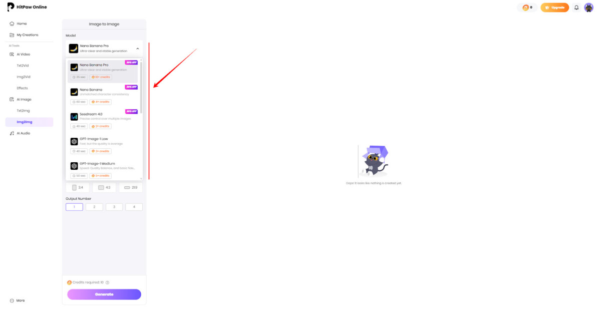 Step 3: Choose an AI model. Here, Nano Banana Pro is the best option and can be used for almost any image type.
