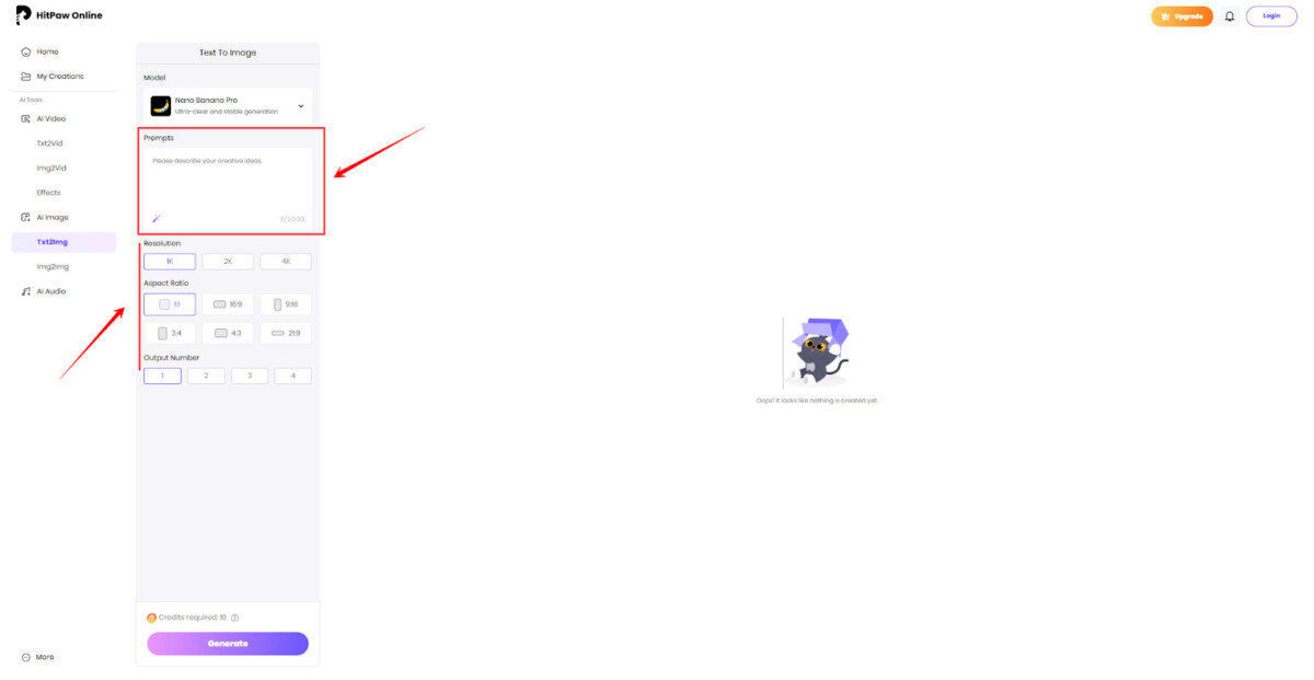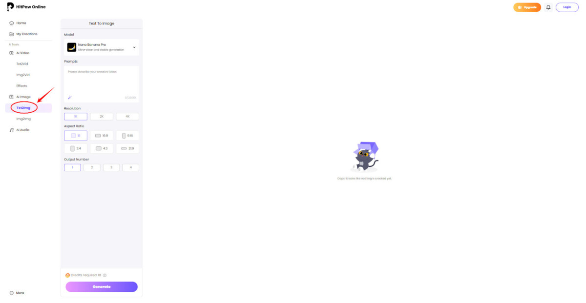 Step 1: Go to HitPaw Online AI Photo Generator in your browser. Here, navigate to the Text-to-Image generator from the side panel.