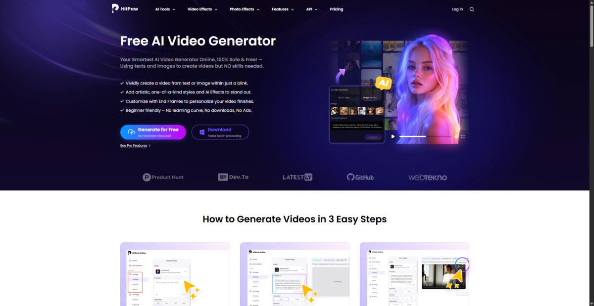 Out of all the tools, HitPaw Free Online AI Video Generator takes the lead. As a free AI video generator online, it removes common barriers like downloads, ads, and skill requirements.