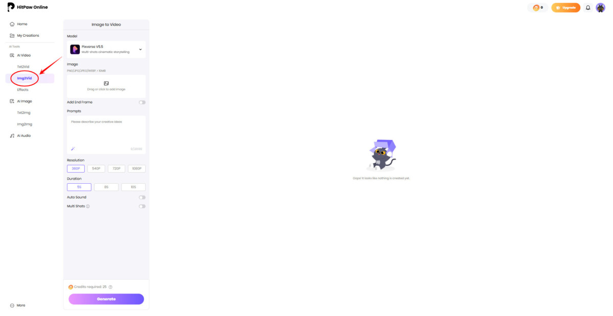 HitPaw Free Online AI Video Generator also lets you create videos using your own images, which is useful for branded or personal content. Here’s how you can do it: