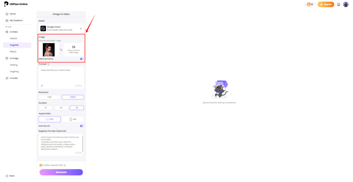 Step 2: Now, upload the image that you want to turn into a trendy video like the BabyAI videos. You can use one or add multiple with start and end frames to make the videos more interesting.