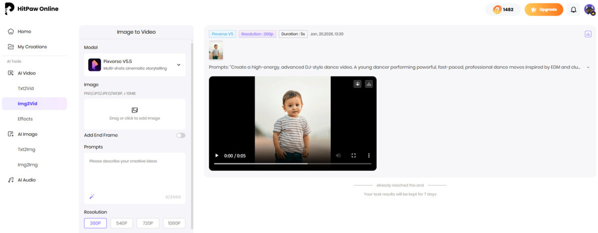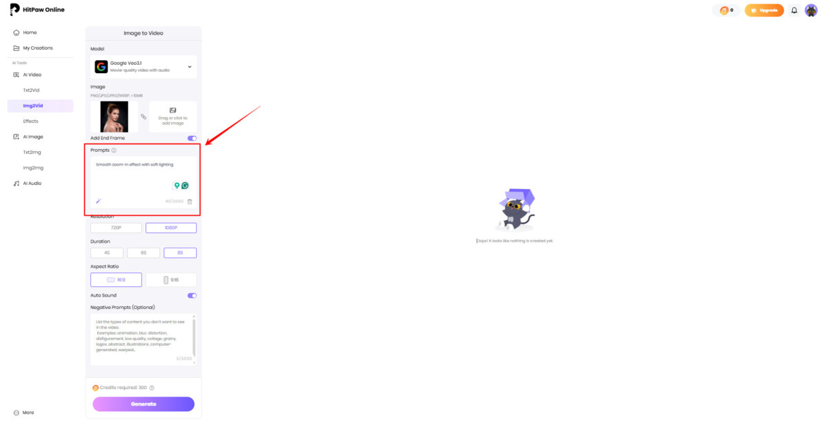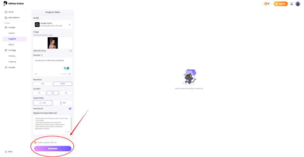 Step 5: In the end, generate the video and preview the result. If needed, adjust the prompt or upload different images and regenerate.