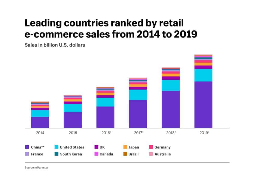 Don’t overlook the opportunities in your manufacturer’s backyard! Not only are countries like China, India, and South Korea some of the most popular manufacturing locations, they’re also home to some of the fastest growing ecommerce markets.