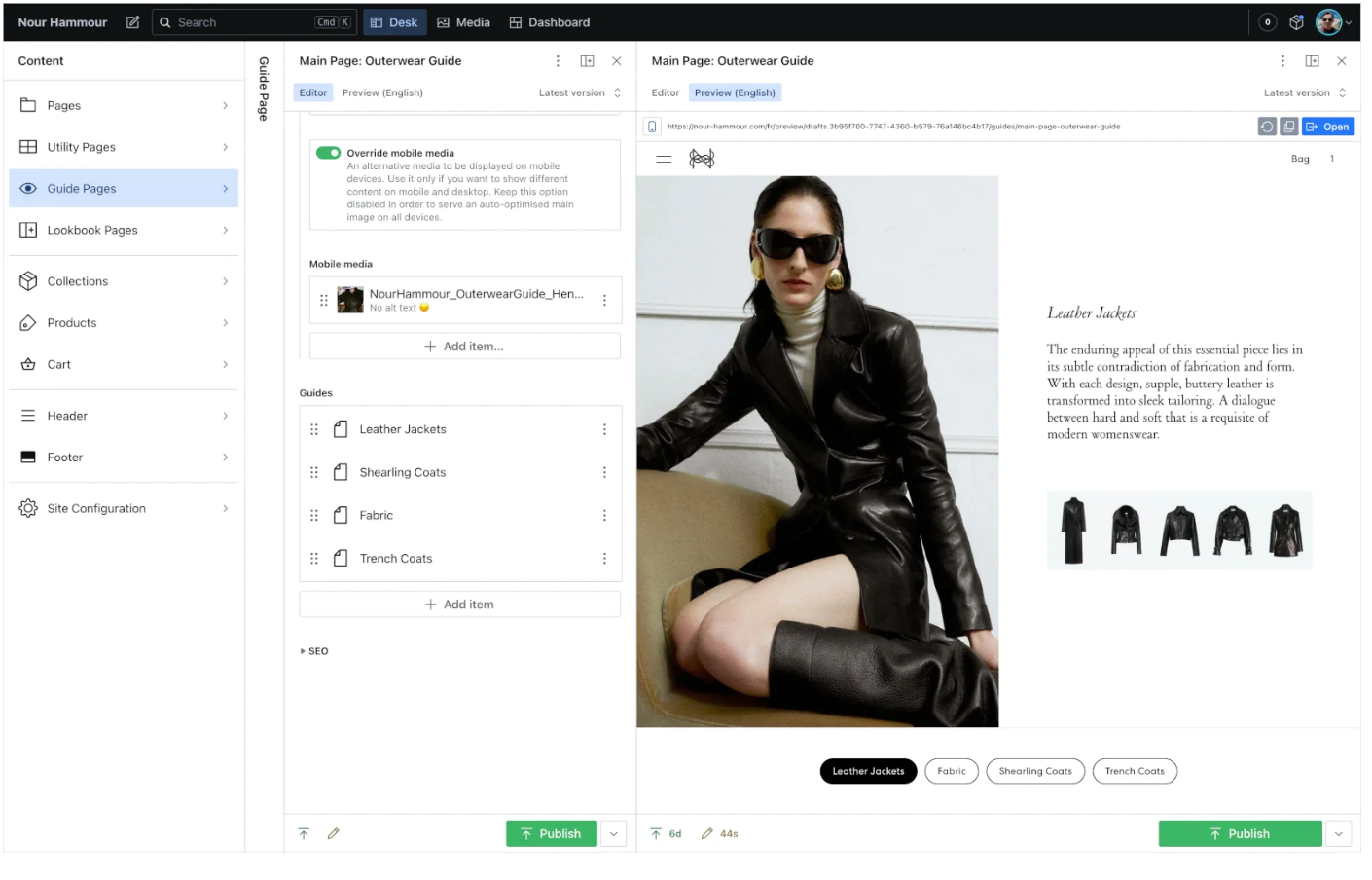 Nour Hammour serves a sophisticated and complex customer base. Its buyers recognize the brand as a premium outerwear manufacturer and expect its ecommerce storefront to replicate its immersive in-store experience of touching one of its high-end jackets. But like all other shoppers, Nour Hammour’s customers also expected its website to be fast and functional—and for too long, it wasn’t either.