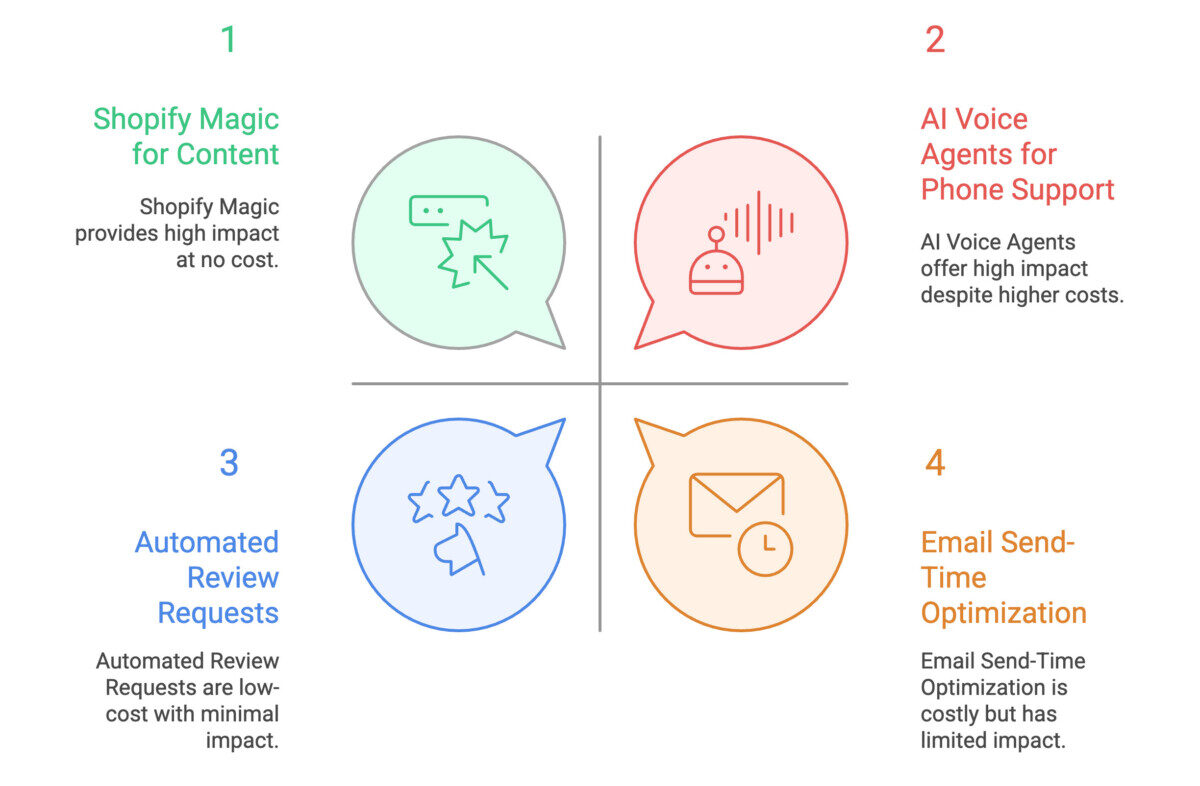 Some of you will implement multiple AI tools—voice agents, chatbots, email optimization, fraud detection. Others might start with just Shopify Magic and a voice agent. Both approaches can work. The key is testing, measuring, and iterating.