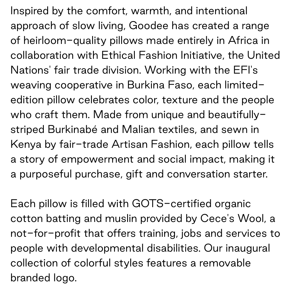 Here, Goodee describes how each pillow tells a story of empowerment and social